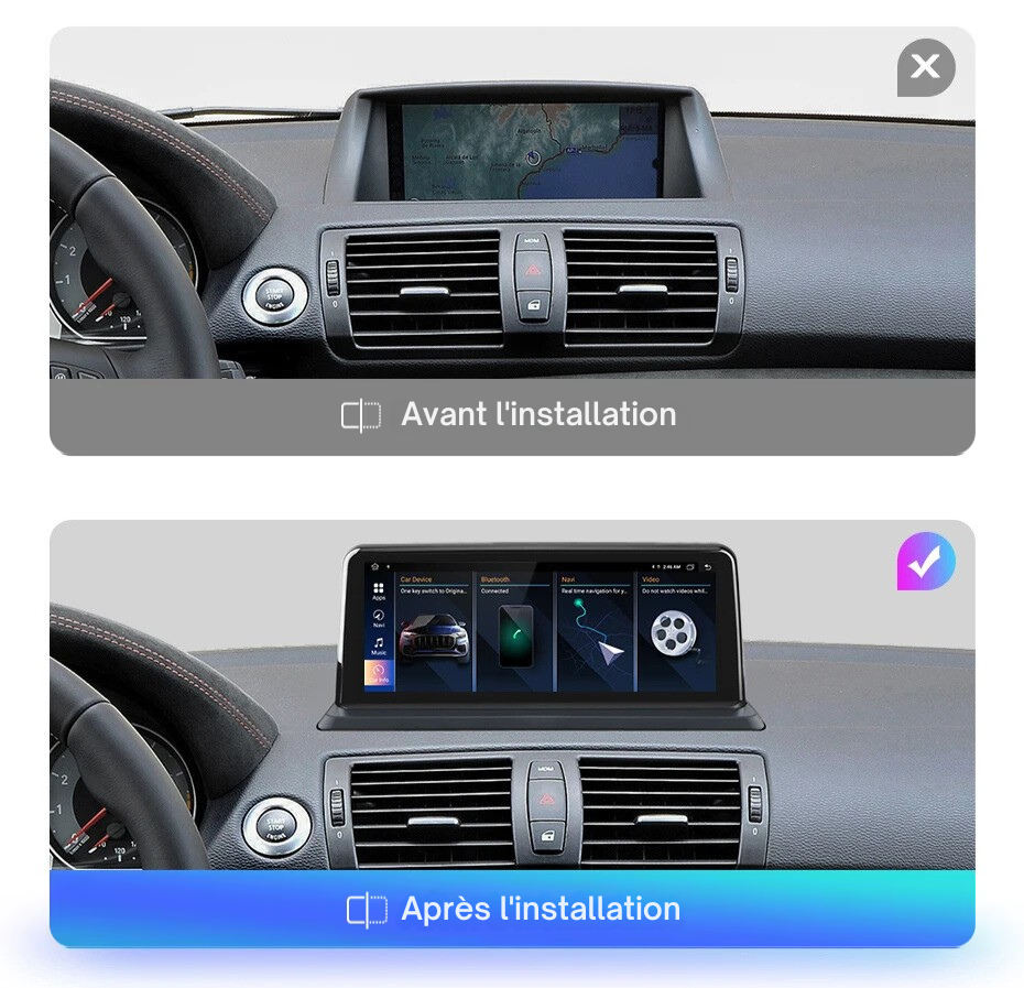 Vous ne pouvez pas installer l'Idrive si votre voiture d'origine est équipée d'un coffre de rangement en forme de coupelle.