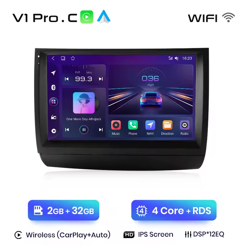 - Réseau 4G + Commande au volant + RDS + Navigation intégrée avec cartes hors ligne